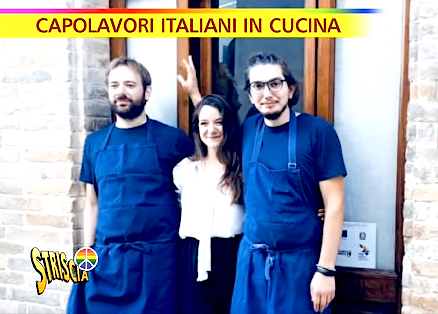 I primi la fanno da padrone tra i Capolavori italiani in cucina, la rubrica che curo per Striscia la notizia. Tante paste in forme ben diverse tra loro e diversi risotti. Il 3 marzo scorso è stata la volta del Risotto allo zafferano, yogurt, liquirizia e caramello d’arancia di Carlo Sebastiani, classe 1989, marchigiano di Porto Sant’Elpidio, che ha aperto il suo ristorante nel centro storico di Ortezzano, piccolo borgo medioevale sulle colline della provincia di Fermo, nel giugno 2021. E lo ha chiamato col suo cognome: Da Sebastiani.